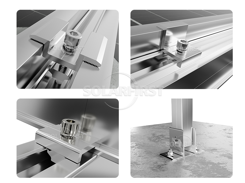 Este sistema de montaje de módulos solares es una estructura de montaje altamente anticorrosión para instalación en tierra, gracias a su material de aleación de aluminio 6005 y acero inoxidable 304.