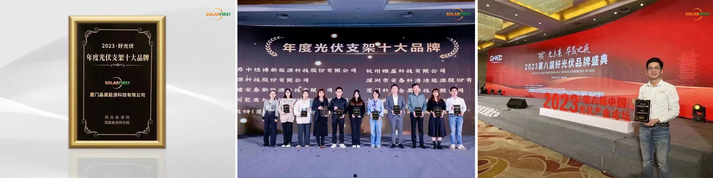 Del 6 al 8 de noviembre de 2023, se celebró en la ciudad de Linyi, provincia de Shandong, la Conferencia de Desarrollo de Alta Calidad de Nuevas Energías de China (Linyi). Organizada por el Comité Municipal de Linyi del PCCh, el Gobierno Popular Municipal de Linyi y el Instituto Nacional de Investigación Energética, el evento fue organizado por el Comité del Distrito Lanshan de Linyi del PCCh, el Gobierno Popular del Distrito Lanshan de Linyi y la Red Internacional de Energía. Durante la ceremonia de los Premios a las Mejores Marcas Fotovoltaicas de China 2023, celebrada el 7 de noviembre, Solar First recibió el galardón "Las Diez Mejores Marcas de Soportes Fotovoltaicos 2023", en reconocimiento a sus excepcionales logros en innovación en sistemas de soporte fotovoltaico.