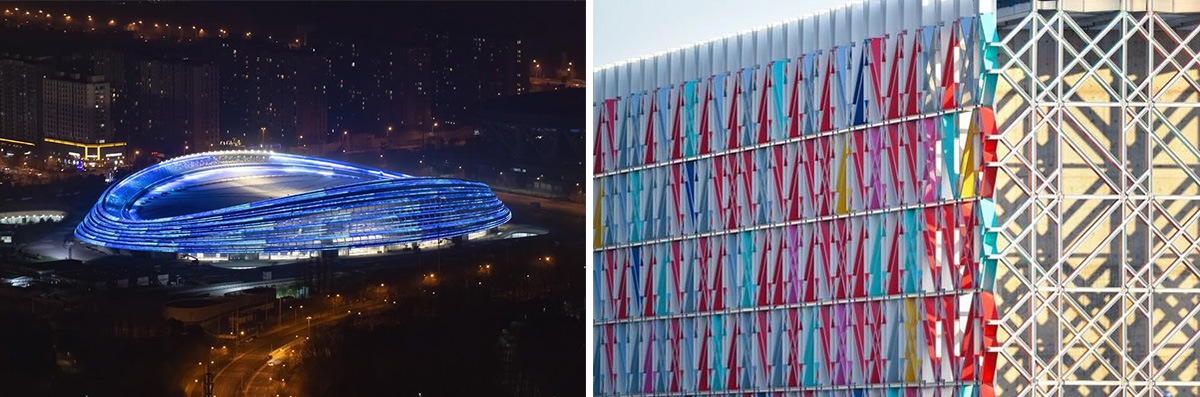 Entre los cuatro conceptos principales de los Juegos Olímpicos y Paralímpicos de Invierno de Pekín 2022, el concepto "verde" ocupa el primer lugar. El Óvalo Nacional de Patinaje de Velocidad, también conocido como la "Cinta de Hielo", al ser la única sede de competición sobre hielo de nueva construcción en el área de Pekín, se adhiere al concepto de construcción ecológica. Su fachada exterior adopta un muro cortina fotovoltaico curvo, compuesto por 12.000 piezas de vidrio fotovoltaico azul zafiro, que equilibra a la perfección las dos principales exigencias: la estética arquitectónica y la protección del medio ambiente.