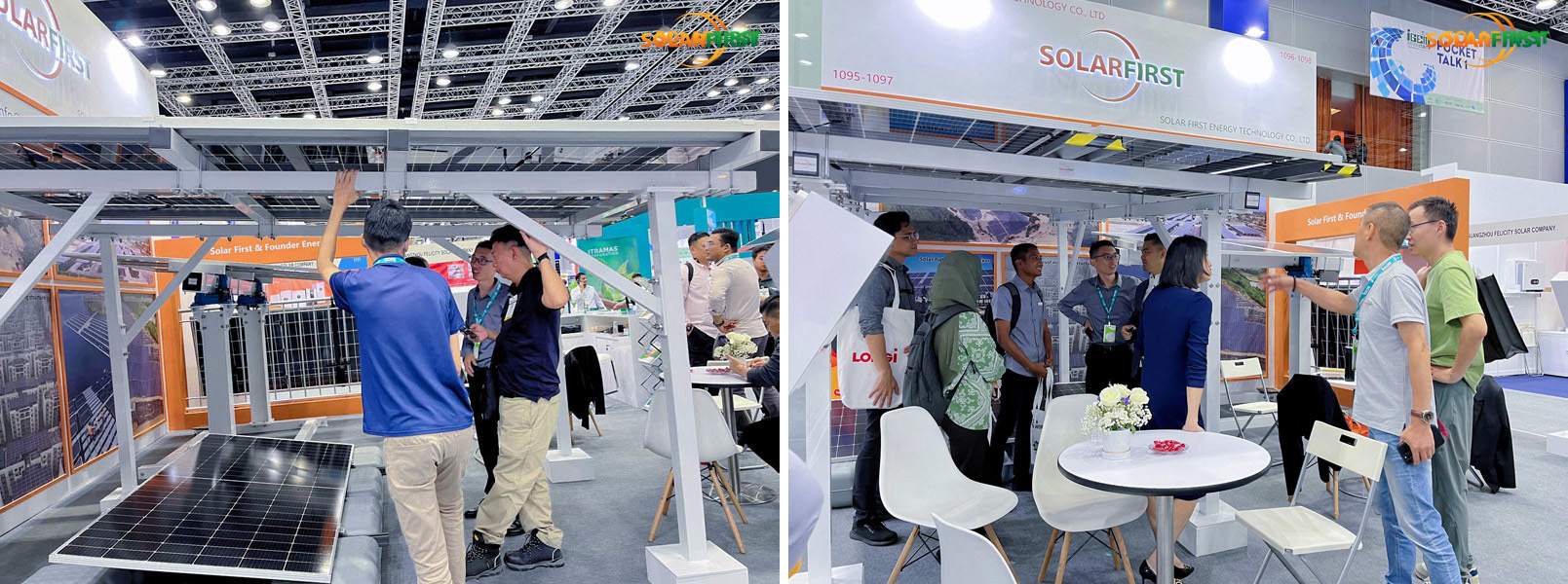 En esta feria, Solar First presentó su serie fotovoltaica flotante TGW, sistemas de seguimiento Horizon, estructuras de montaje fotovoltaico para tejados, cocheras solares impermeables y soluciones de montaje para balcones en los stands 1095-1098 del pabellón 1 del Centro Internacional de Comercio y Exposiciones de Malasia. La empresa atrajo tanto a visitantes nacionales e internacionales, tanto nuevos como recurrentes, gracias a sus productos innovadores y servicios de primera calidad.