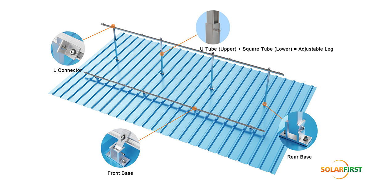 Fáciles de instalar y fabricadas para una mayor durabilidad, estas patas solares ajustables se integran a la perfección con soportes de montaje para techos metálicos estándar y clips para paneles solares. El sistema admite configuraciones versátiles, reduce el uso de materiales y simplifica el montaje, lo que lo convierte en una solución rentable y adaptable para diversos proyectos solares.