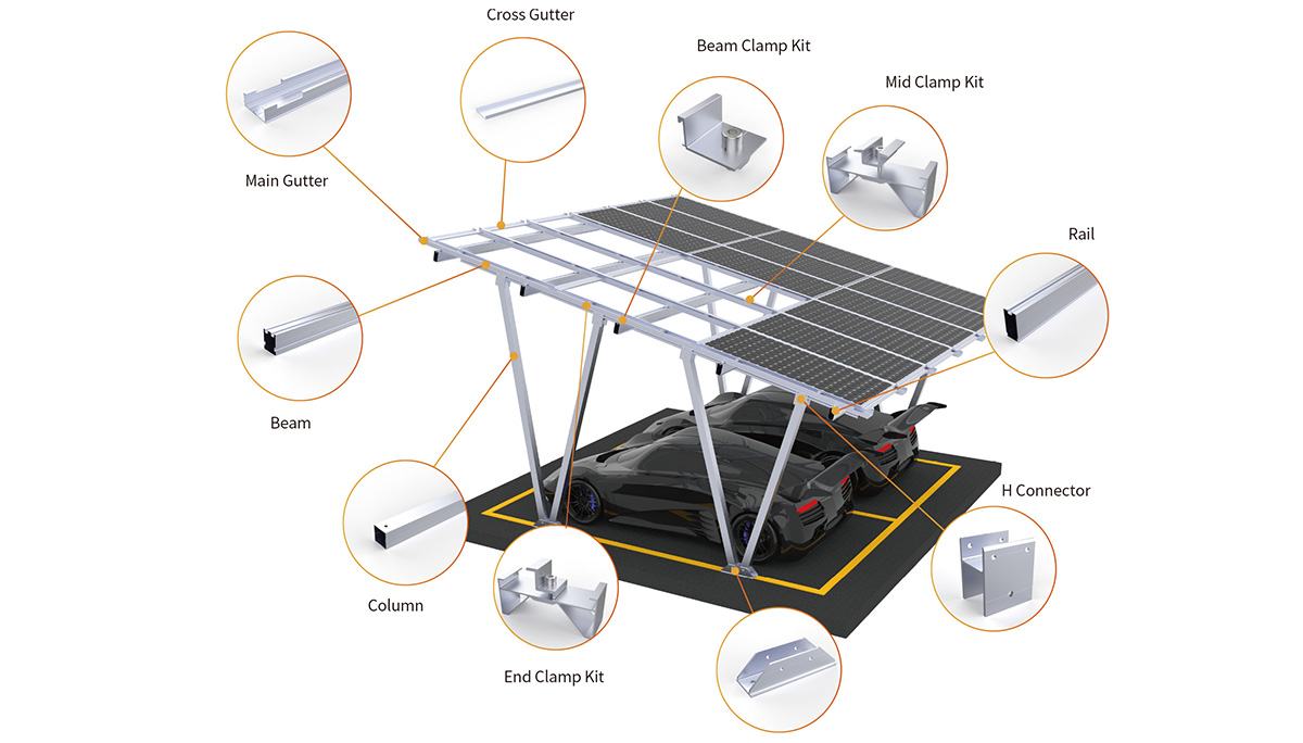Este kit de cochera solar residencial ofrece una solución integral que combina la protección solar con la generación de energía renovable. Fácil de instalar sobre cimientos de hormigón, el sistema está diseñado para ofrecer simplicidad y durabilidad, lo que lo convierte en la opción ideal para propietarios que buscan sistemas de cochera solar eficientes y atractivos.