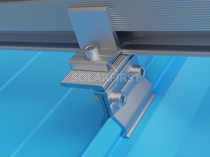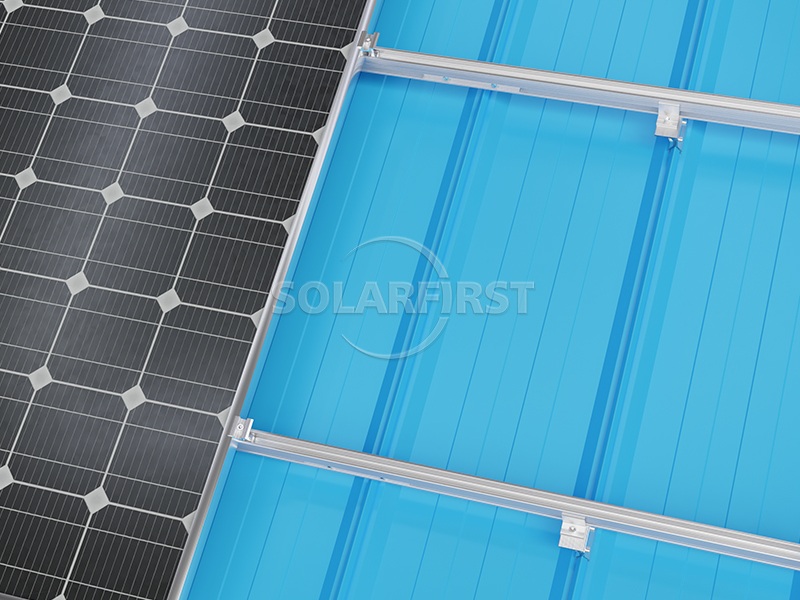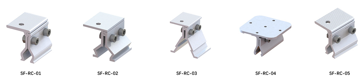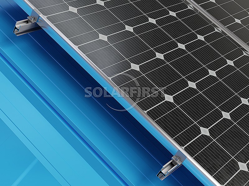 El sistema utiliza componentes y rieles de soporte de montaje en techo de aluminio ligero que minimizan la carga adicional sobre la estructura subyacente. Las abrazaderas solares angulares, diseñadas específicamente para soportes de techo, se adaptan a diversos perfiles angulares de láminas de techo, garantizando una fijación segura sin perforar el techo. Para mayor flexibilidad, la abrazadera de techo puede combinarse con soportes de pie en L para lograr una elevación y posicionamiento óptimos del módulo solar.