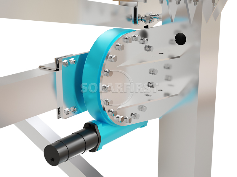 Diseñado para una alta adaptabilidad, el rastreador se adapta fácilmente a terrenos variados gracias a su robusta estructura en espiga y su sistema de soporte multipunto. El diseño de malla cuadrada mejora la estabilidad, mientras que la disposición abierta entre unidades independientes facilita el acceso para la construcción y el mantenimiento. Cada rastreador ajusta inteligentemente el azimut (±120°) y la elevación (0°–60°) en tiempo real según las condiciones del terreno y el clima para optimizar la captación de energía.