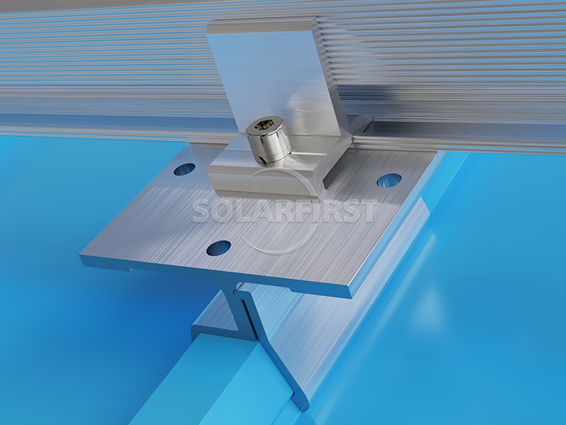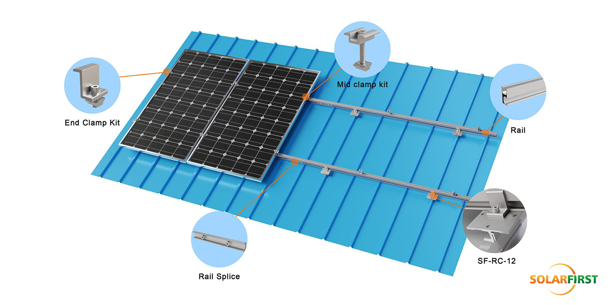El sistema utiliza abrazaderas y rieles de aluminio anodizado, que ejercen una ligera presión sobre la estructura subyacente del techo. El diseño específico de las abrazaderas Klip Lok varía para adaptarse a los diferentes perfiles de las láminas del techo. Para mayor versatilidad, la abrazadera de techo puede combinarse con un soporte de pie en L para elevar los módulos solares al ángulo de inclinación deseado.