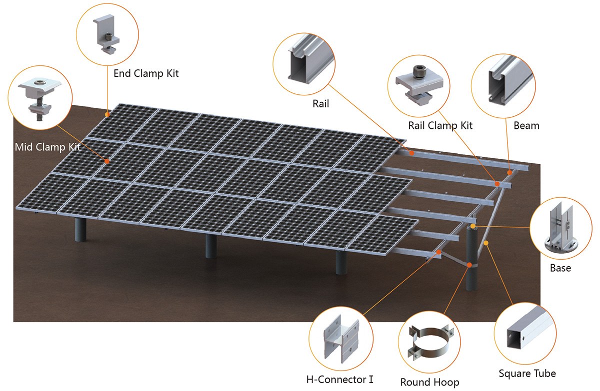 Este kit de montaje en suelo solar combina un diseño eficiente, compatibilidad ambiental y rentabilidad, lo que lo convierte en una opción ideal para proyectos a gran escala donde las cimentaciones tradicionales no son viables.