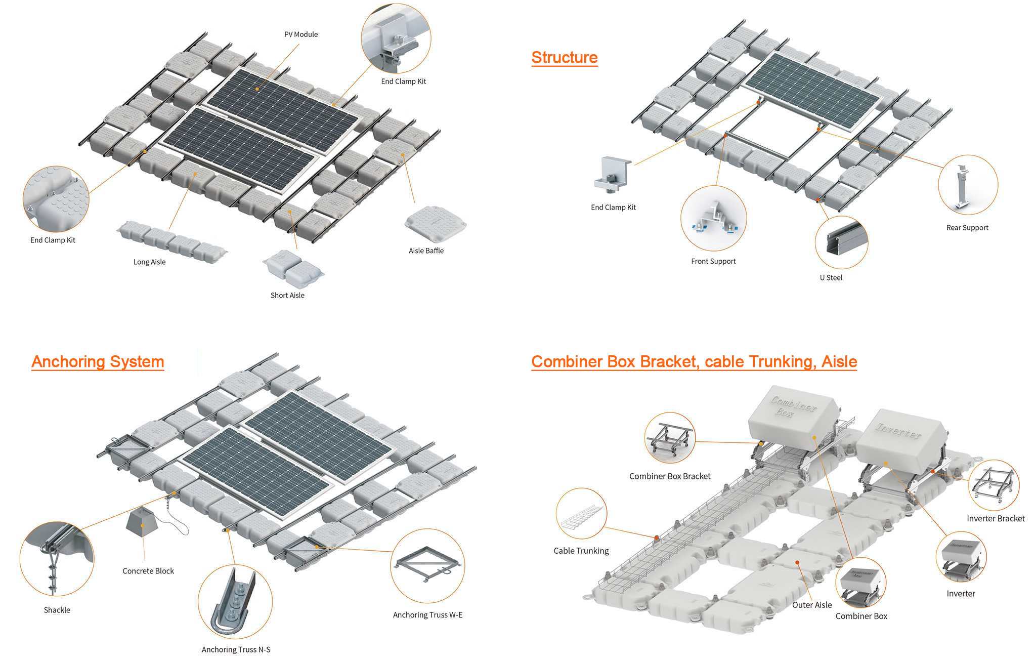 Fabricado con flotadores ecológicos de HDPE, aluminio anodizado AL6005-T5, acero inoxidable SUS304 y acero con recubrimiento de Zn-Al-Mg, el TGW03 garantiza una fiabilidad duradera y es seguro para fuentes de agua potable y zonas ecológicamente sensibles. Con una garantía de 10 años, ofrece una solución sostenible y económica para proyectos fotovoltaicos flotantes distribuidos y a gran escala, estableciendo un nuevo estándar en adaptabilidad y valor.