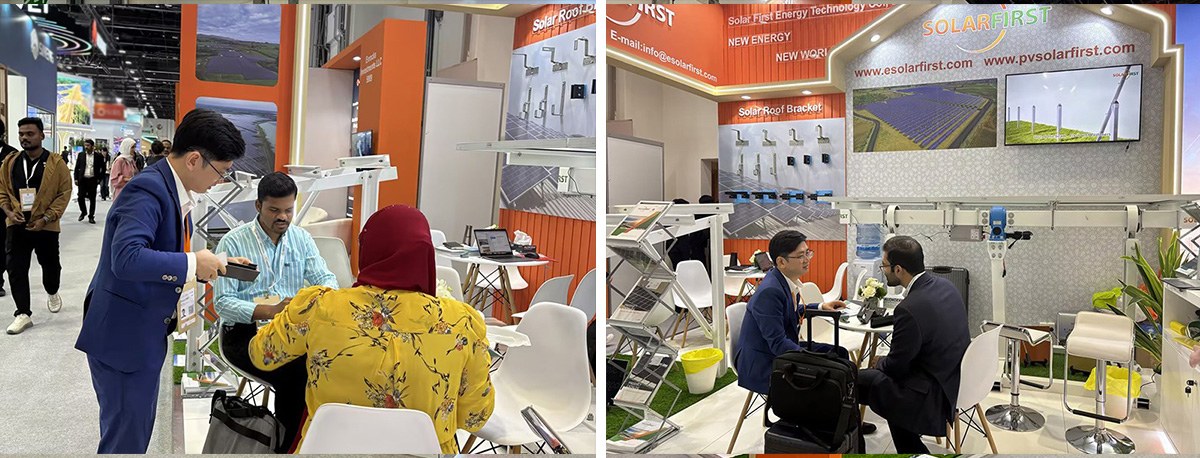 Del 13 al 15 de enero se celebrará la Cumbre Mundial de Energía del Futuro 2026 (WFES) era Celebrada en el Centro Nacional de Exposiciones de Abu Dabi. Como evento de gran influencia en energías limpias en Oriente Medio, la WFES reunió a los mejores expertos y empresas líderes en el sector global de las energías renovables. En esta ocasión, Solar First Grupo presentó su gama completa de soluciones fotovoltaicas, incluidos sistemas de seguimiento, soportes fijos y soportes BIPV (Building Integrated Photovoltaics), en el stand 5008, demostrando a los visitantes globales su sistema de productos altamente adaptable desarrollado para el duro entorno y el terreno complejo del Medio Oriente.